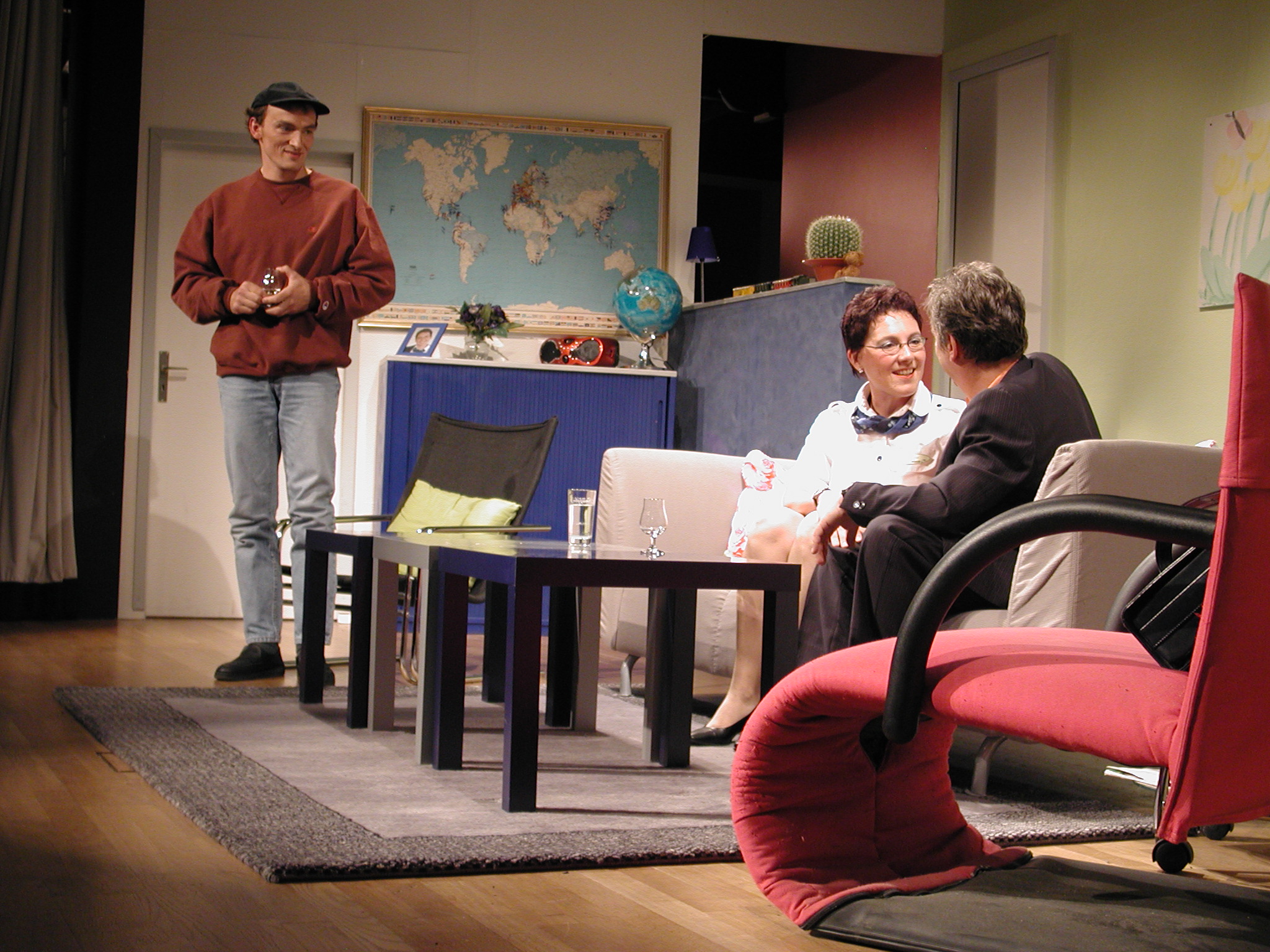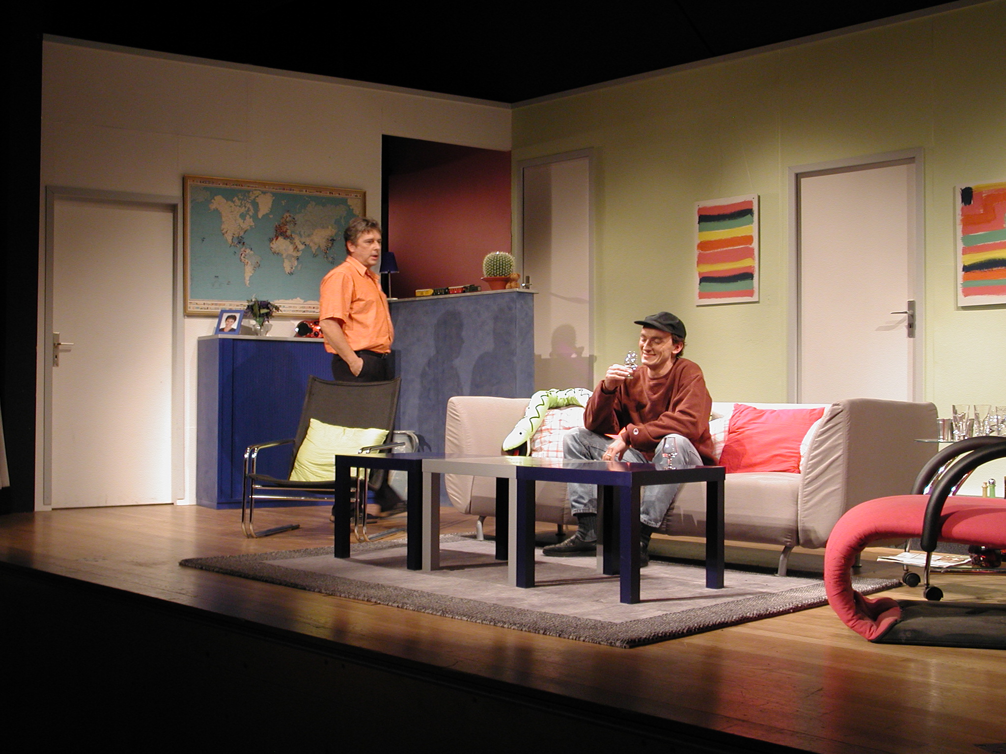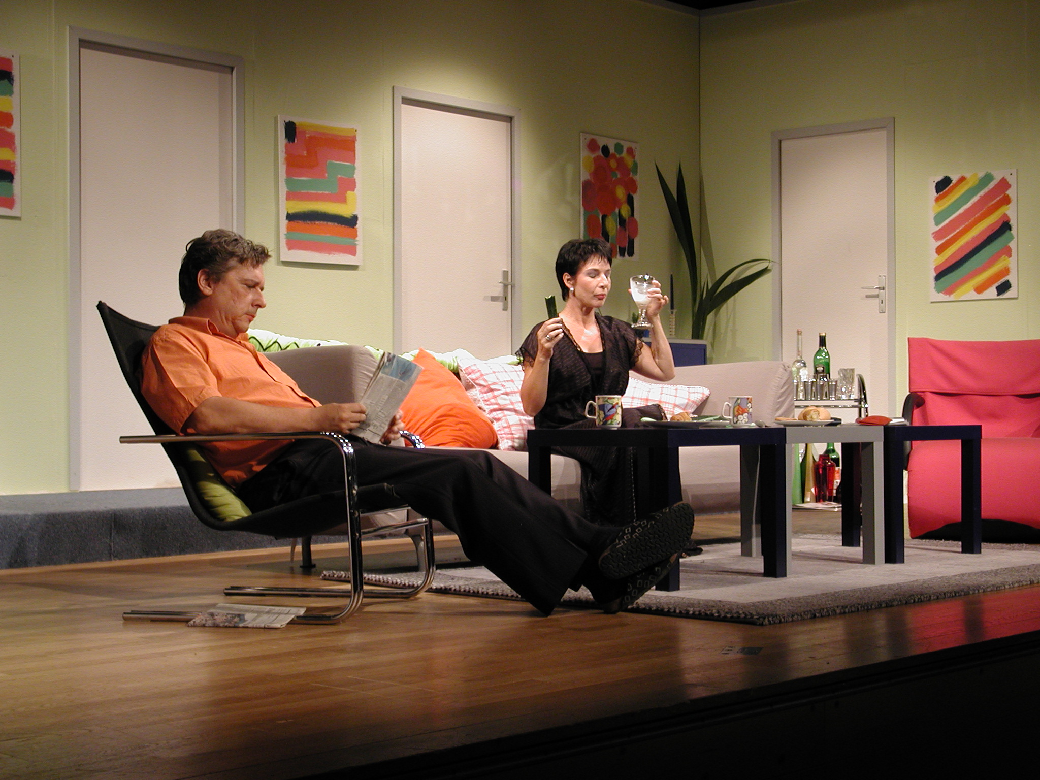 Der Innenarchitekt, Bernard, charmant, Junggeselle und in Paris lebend, hat ein Arrangement getroffen, das sein Freund Robert, der aus der Provinz zu Besuch angereist kommt, bewundernd ein „Perpetuum mobile der Liebe“ nennt.